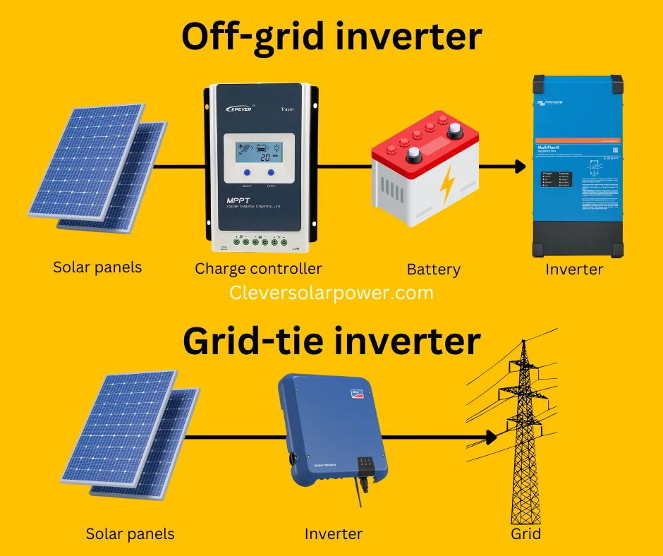 Difference between off-grid and grid-tied inverter