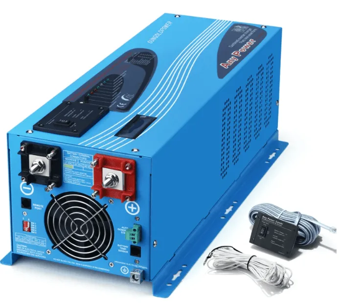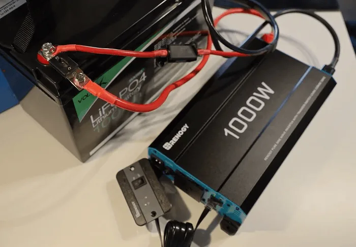Renogy is a popular brand for off-grid applications. The 1000W inverter comes with 4AWG battery cables and a 16ft long remote switch to turn the inverter on or off from a distance.
