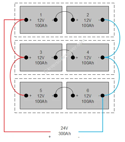 Hi, I have a question, can you connect the batteries in parallel first then in series? Because my batteries are not in the same state of charge and in your other post (the one where you explain how to connect 4 12V batteries into 24V https://cleversolarpower.com/connect-4-12v-batteries-to-make-24v/ ) you said that if the batteries were not in the same state of charge you should connect them in parallel first. Thank you!