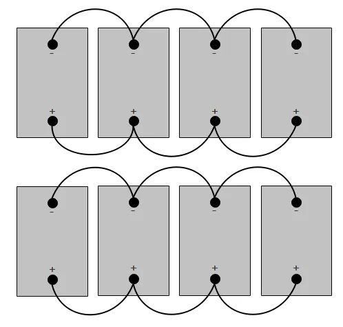 Then we need to connect these two parallel sets in series to become the following configuration: