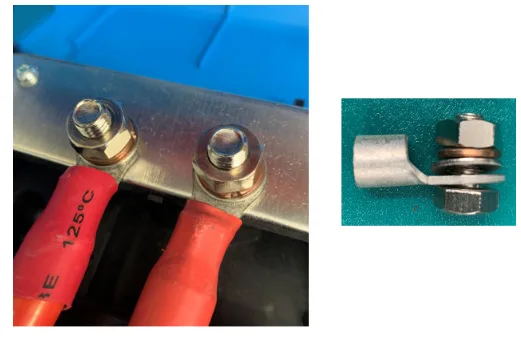 You should have the bolt upside down in the drilled hole of the busbar. This will have the least resistance. So it becomes: